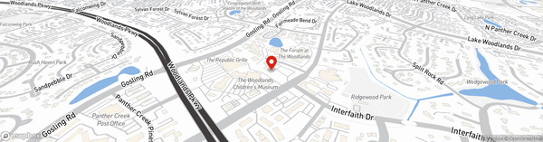 We are in the Panther Creek Shopping Center; near The Woodlands Children's museum.